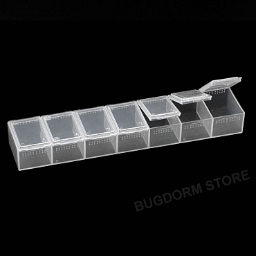 Insect rearing cells with laser-cut ventilation holes.