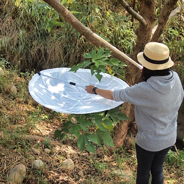 Our Foldable Insect Beating Tray, available in diameters of Ø60 cm and Ø90 cm, is expertly crafted for entomologists. It features a lightweight, collapsible frame for transport and storage, coupled with a durable catching tray ideal for specimen collection. The tray is equipped with a retractable aluminum handle, adjustable from 45 cm to 105 cm, to accommodate various terrains. Included is a convenient carrying bag, making the tray highly portable for diverse field research applications.