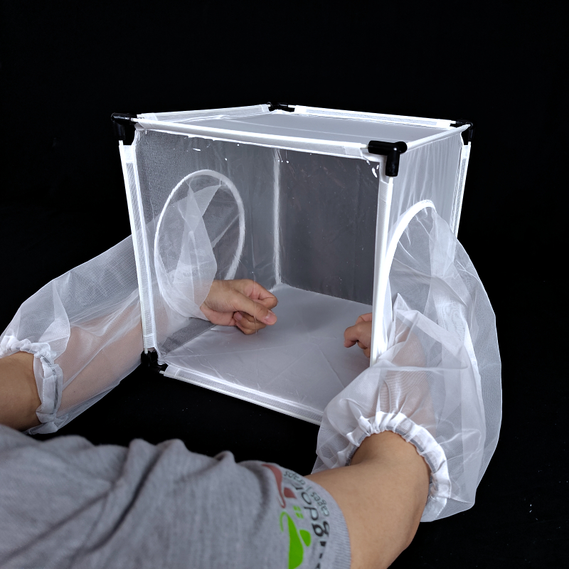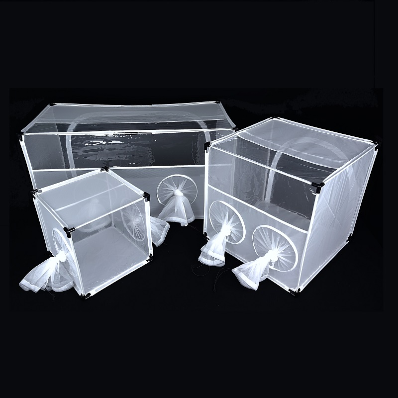 The BugDorm-4E3030D insect cage is an alternative to the BugDorm-4S3030D. Please note that the BugDorm-4E3030D is all mesh except the floor and front panel. It has very fine Nylon netting (150 x 150 mesh) for better ventilation.