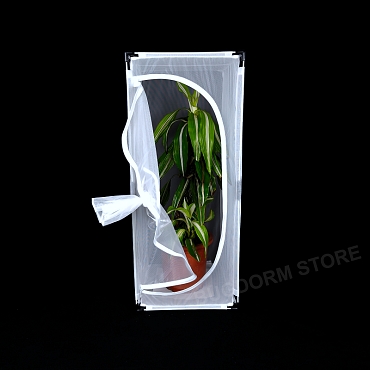 At 77 cm tall, the BugDorm-4E3074 insect cage is suitable for small potted plants.  It has very fine Nylon netting (150 x 150 mesh) all around, and no plastic sheet is used in any of the panels except the floor for better ventilation.