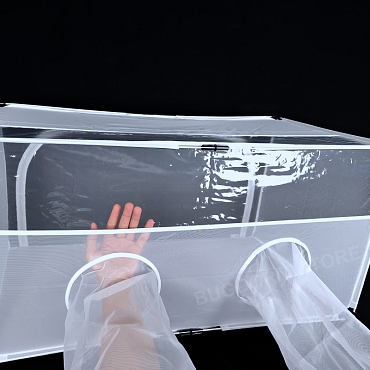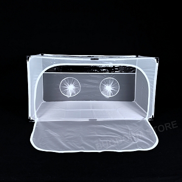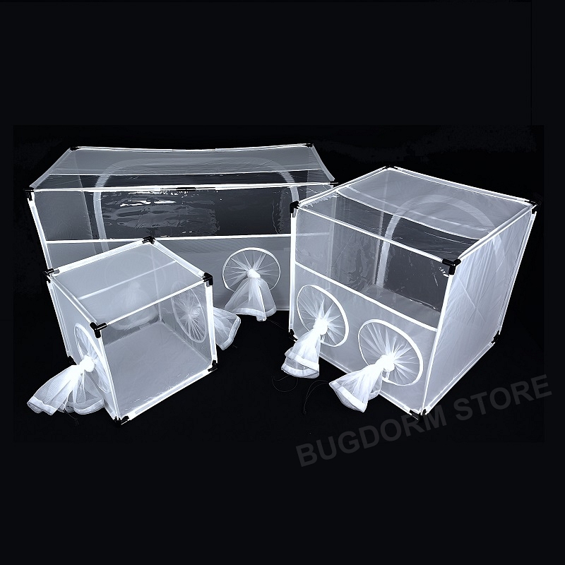 BugDorm-4E4590DH insect cage is an alternative to BugDorm-4F4590DH. Please note that BugDorm-4E4590DH is all mesh except the floor, 1/3 front-top panel, and 1/3 top-front panel. It has very fine Nylon netting (150 x 150 mesh) for better ventilation. The large zip opening on the back panel aids in adding or removing large objects.