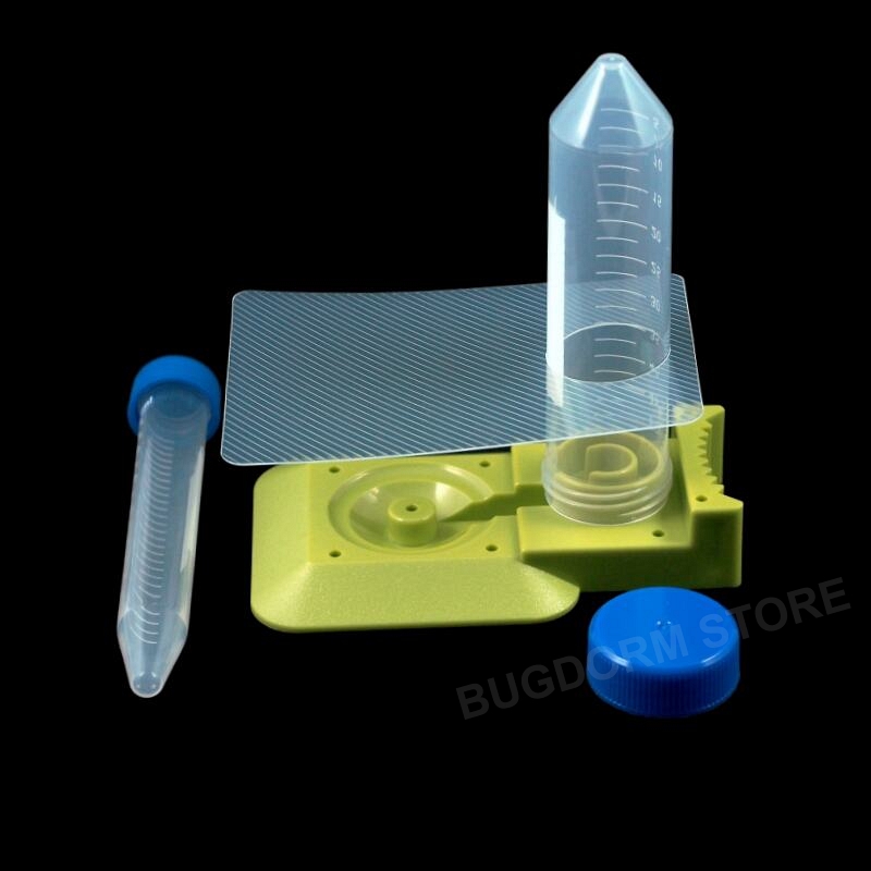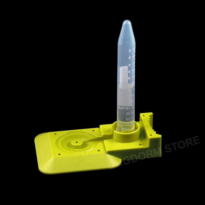 Our insect bait feeder is a tool initially designed for monitoring/controlling the Dolichoderus thoracicus in Taiwan.  Fill the centrifuge tube with liquid bait, such as an insect-killing agent or sugar solution.  Hold the feeding tray upside down, then tightly fit the tube opening to the round base flange.  When flipping the tray again with the tube opening facing down, the bait fluid will flow gradually from the tube into the round pit and dispense slowly as the bait is consumed.  A rectangular plastic piece that can be loosely mounted onto the centrifuge tube as a rain shield is included.  It can prevent the bait fluid from being diluted or washed away too quickly by the rainwater.