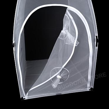BugDorm-2M400 insect cage is an alternative to BugDorm-2S400.  It has Nylon netting (44x32 mesh, 650 µm aperture) all around, except the floor, for better ventilation.r.  There are no clear panels on BugDorm-2M400.