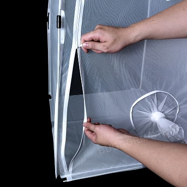 BugDorm-2E400 insect cage is an alternative to BugDorm-2F400.  Please note that BugDorm-2E400 is all mesh except the floor.  There are no clear panels on BugDorm-2E400.  The BugDorm-2E400 has very fine Nylon netting (150 x 150 mesh) all around for better ventilation.