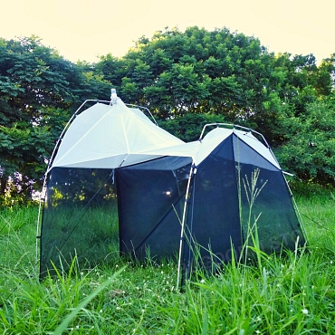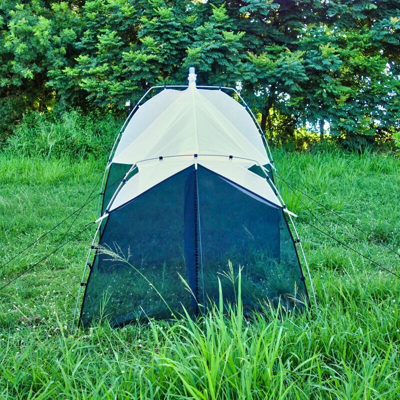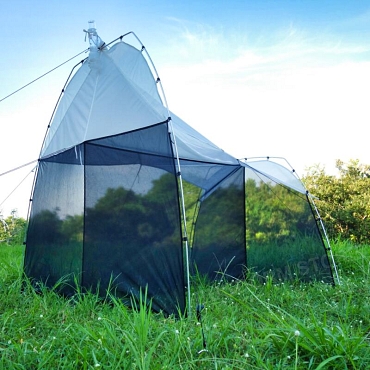 Because the frame is fully freestanding, the ez-Malaise works in treeless or wind-exposed terrain where natural supports are absent—Arctic tundra, alpine meadows, coastal barrens, gravel outwash.  Shock-corded poles and guy ropes provide a stable setup on shallow soils or permafrost; use rocks or deadman anchors when stakes cannot be driven.