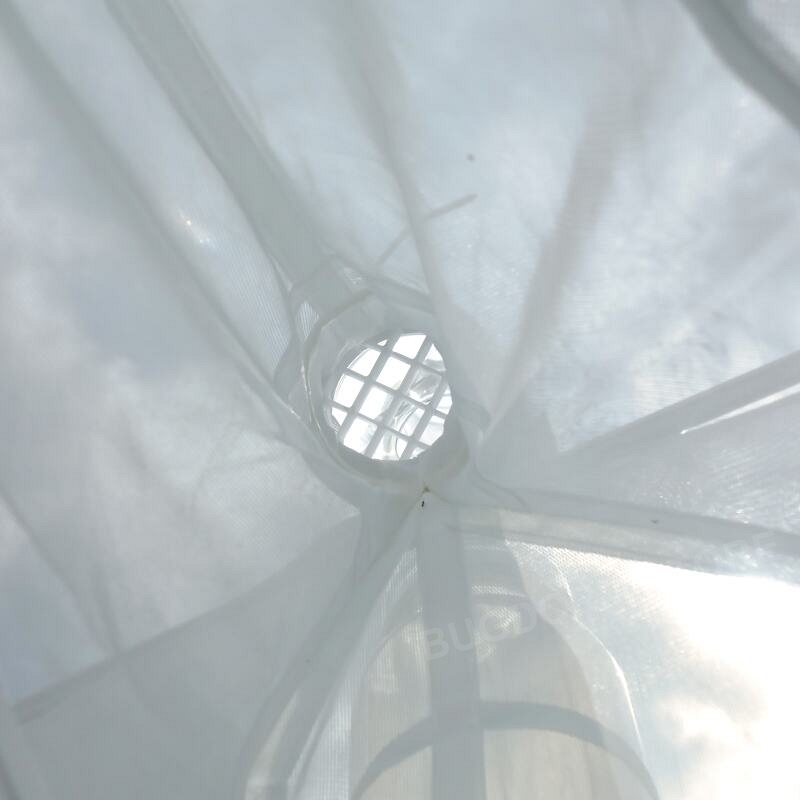 The inverted Y-shaped collection head is molded from solid polycarbonate for durability, UV resistance, and high transparency.  Ventilation ports, closed by default, allow optional airflow; some studies report increased catch efficiency when airflow is enhanced.  A removable moth excluder with 1 × 1 cm grid spacing limits entry of larger insects like Lepidoptera, helping reduce wing-scale contamination.  Seat the head on the supporting pole rather than the fabric body to ensure proper alignment.