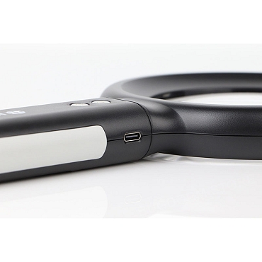 This magnifier operates on two AA batteries (not included) and can be powered continuously via a USB Type-C connection (cable not included).  When using battery power, the LED automatically shuts off after 30 minutes to conserve energy.  No power is directed to the batteries for safety while the magnifier is connected through the USB-C port.