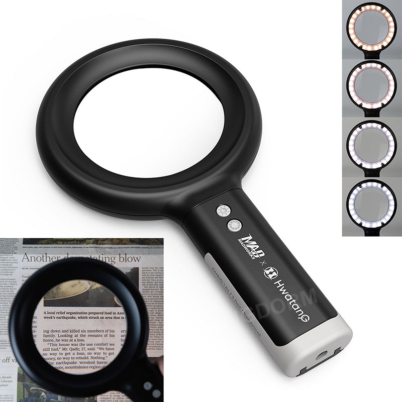 This LED magnifier has a ring light system with 24+24 SMD-LEDs and a diffuser, ensuring even, low-glare illumination for reading.  Its superior color accuracy, utilizing Ra>90 LEDs typically found in art galleries, makes it ideal for examining reflective surfaces like metal.  Its enhanced visual clarity is especially beneficial for users with visual impairments.