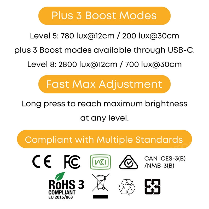 [4 Customizable Color Temperatures / 5+3 Brightness Levels & Turbo Mode]