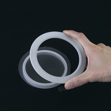 These donut lids are key part of our pint-sized BugDorms. They can cover petri dishes (NOT sold) with external diameters of 89 mm or less. These donut lids may also fit onto your own cups if mouth diameters are the same. The donut lid has a matt surface for retaining penciled notes. Its 104 x 94 mesh Nylon screen, if stained, can be replaced with clean Nylon mesh circles (sold separately) or with your own screen materials. Circles of 150 x 150 mesh Nylon screen are also available (sold separately) to effectively keep aphids, thrips, and parasitic wasps from escaping the cup. Stockinet sleeves for the pint-sized BugDorm can be purchased separately if you do not wish to remove the lid to access cup interior.