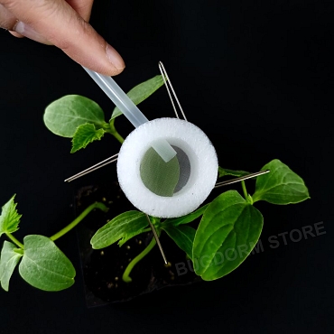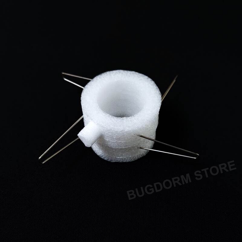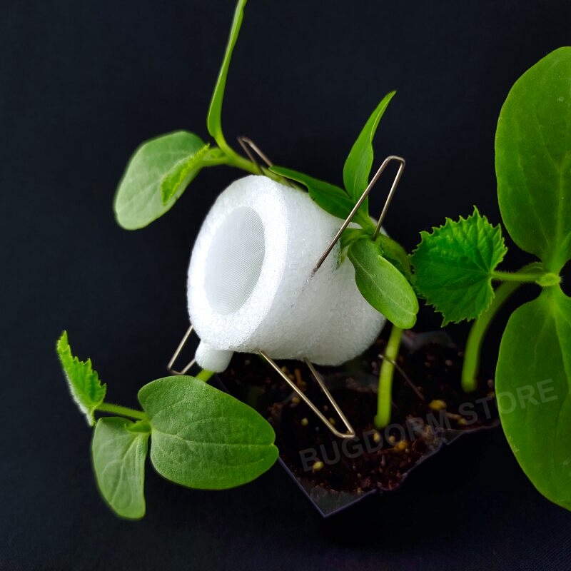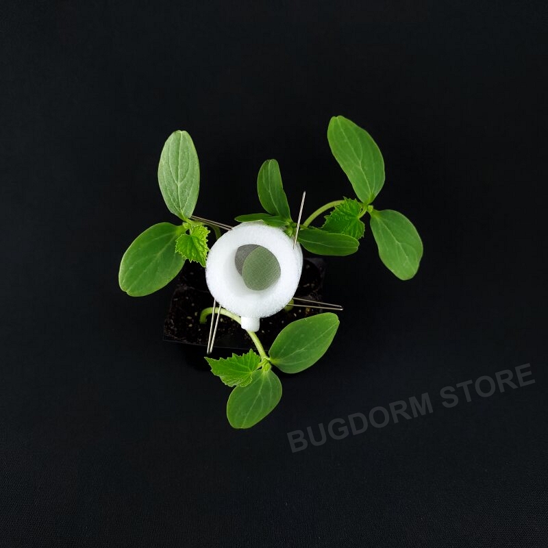 This clip cage is a convenient tool for confining small insects in their natural habitat, e.g., plant leaves, for scientific studies.  Each cage comprises two hollow foam rings with one mesh window on each ring for visibility and ventilation.  Use stainless steel fixing pins to clamp the clip cage to the leaves.  The lightweight and weather-resistant design ensures that the cages will not damage the plants and are suitable for outdoor environments.