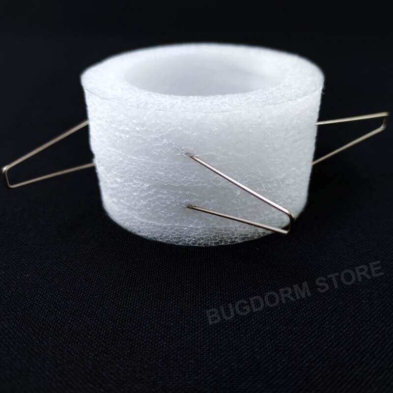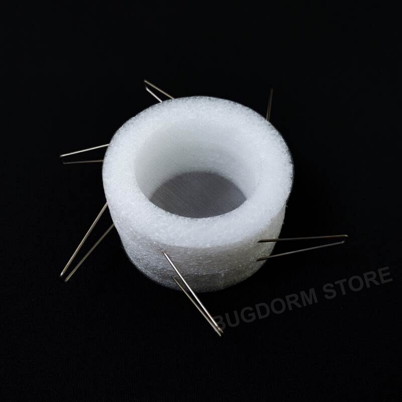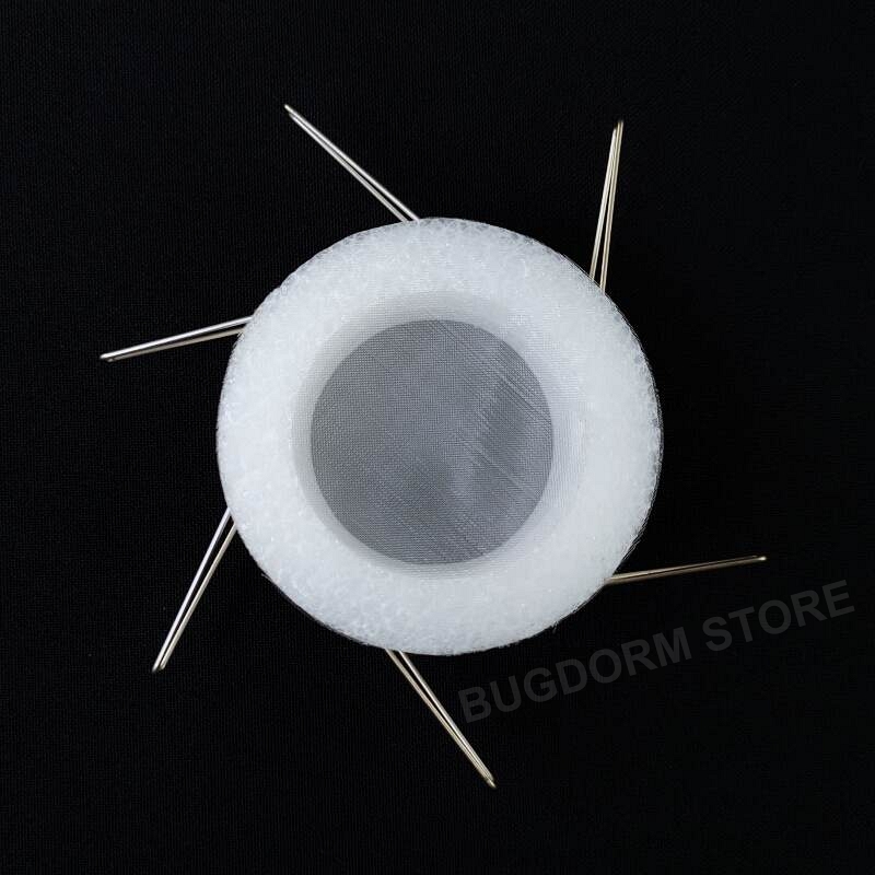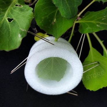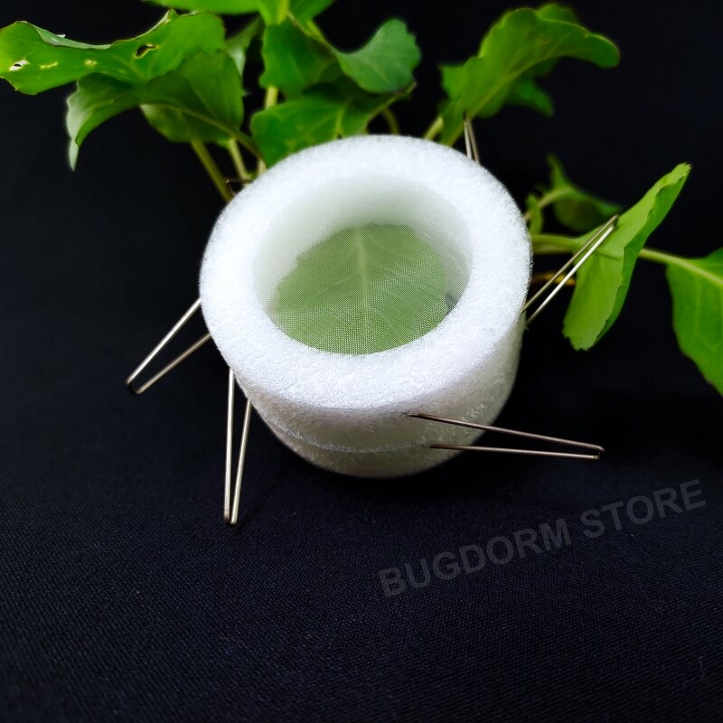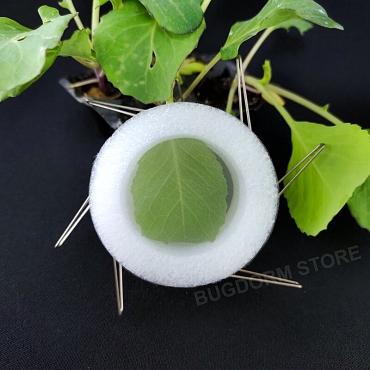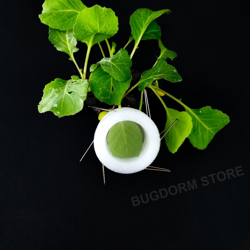 This clip cage is a convenient tool for confining small insects in their natural habitat, e.g., plant leaves, for scientific studies.  Each cage comprises two hollow foam rings with one mesh window on each ring for visibility and ventilation.  Use stainless steel fixing pins to clamp the clip cage to the leaves.  The lightweight and weather-resistant design ensures that the cages will not damage the plants and are suitable for outdoor environments.
